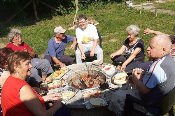Már alig várták a napot, mikor újra bejöhetnek a klubba és találkozhatnak egymással. A jó idő adta lehetőséget kihasználva, mindenki nagy örömére, 2020. július 23-ára közös szalonnasütést szerveztünk. Sokan eljöttek és hozták magukkal a "sütnivalójukat" és a friss zöldségféléket a saját kertjeikből. A nemrég felújított klubunk tágas és árnyékos teraszán egy igazán kellemes napot töltöttünk el együtt. Beszélgettünk és közben frissítőül szörpöt iszogattunk. Mindenki nagyon jól érezte magát, mindenkire ráfért egy kis feltöltődés!
